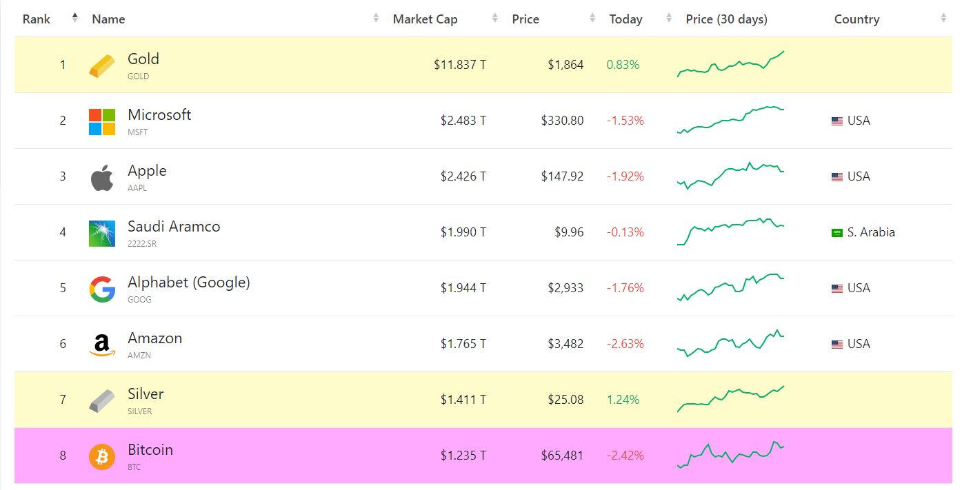You've seen the news...Bitcoin is now the 6th largest asset in the world by market cap.Ethereum follows closely at number 15.